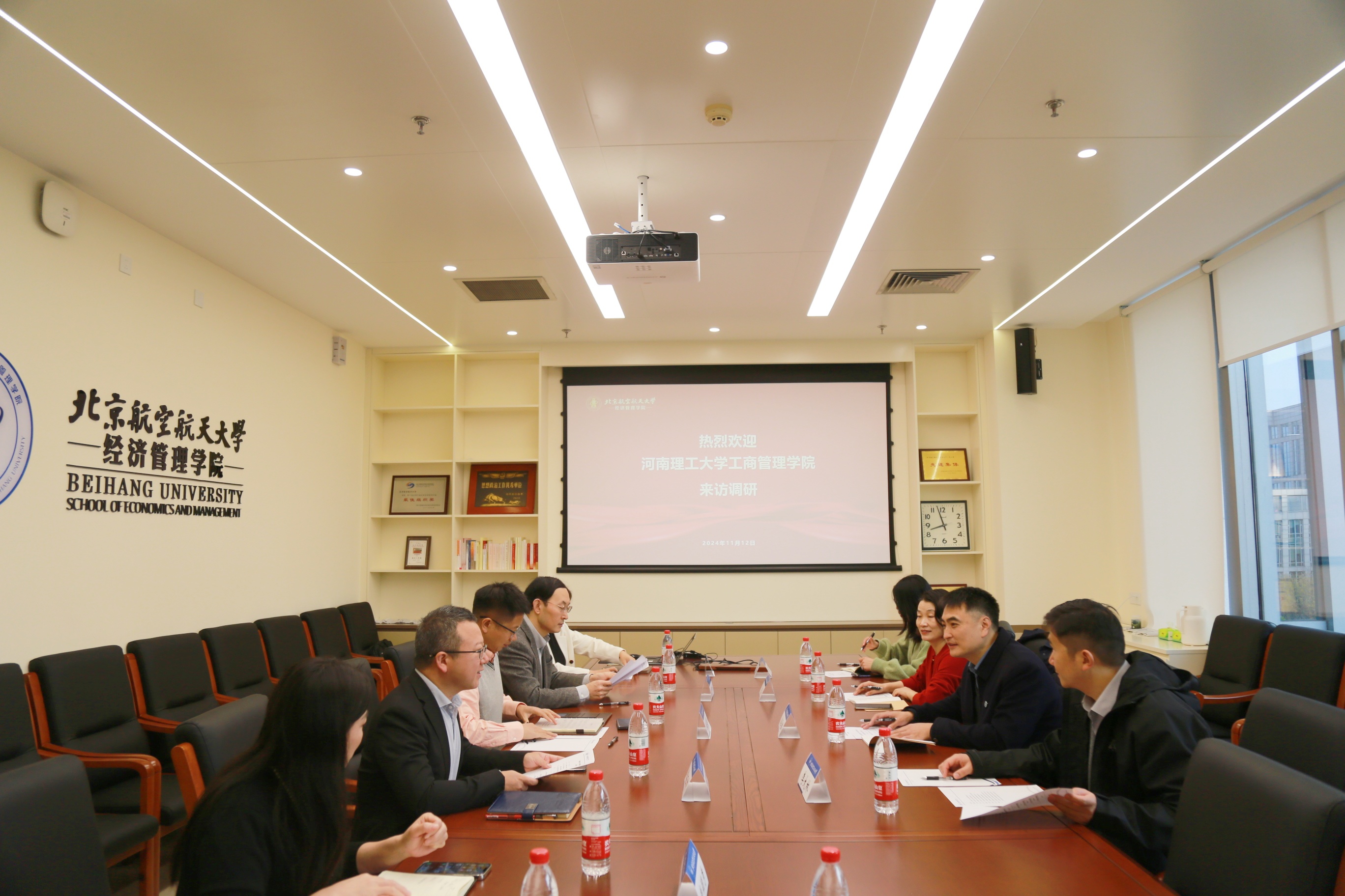 秦中峰副院长重点介绍了北航MBA项目的发展历程、改革探索及培养成果;吴玉萍副院长介绍了河南理工大学MBA项目的办学历史、招生规模、学生培养和实践活动等内容。随后,双方就MBA项目的课程设置、学生实践活动、联合会管理等方面展开进一步的详细交流和深入探讨。